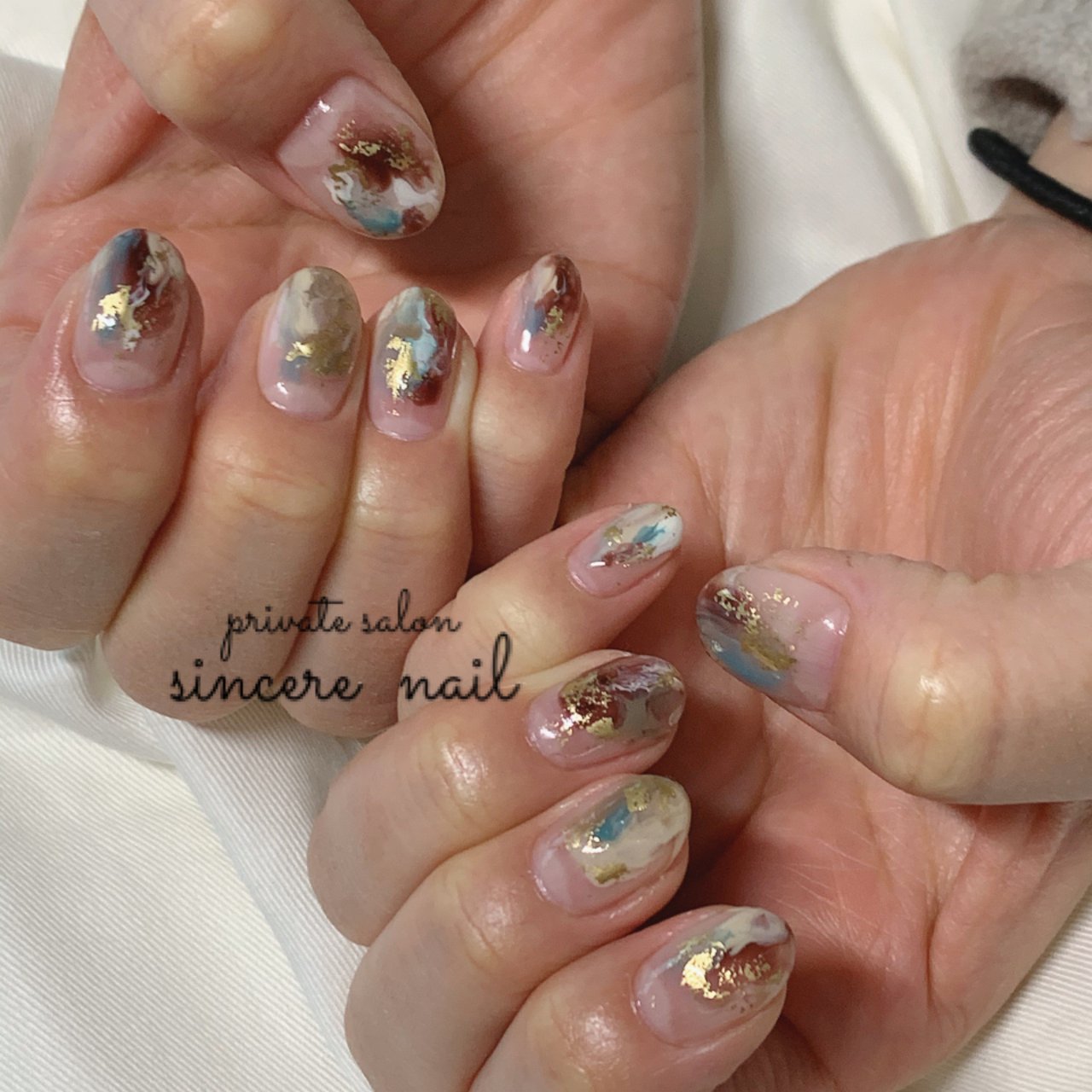 オールシーズン ハンド ニュアンス ブルー ブラウン Sincere Nailのネイルデザイン No ネイルブック